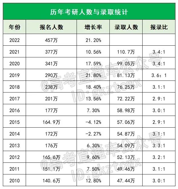 根据最近5年的数据,从2017年首破200万大关起,考研报名人数连年攀升,到2021年达到377万。