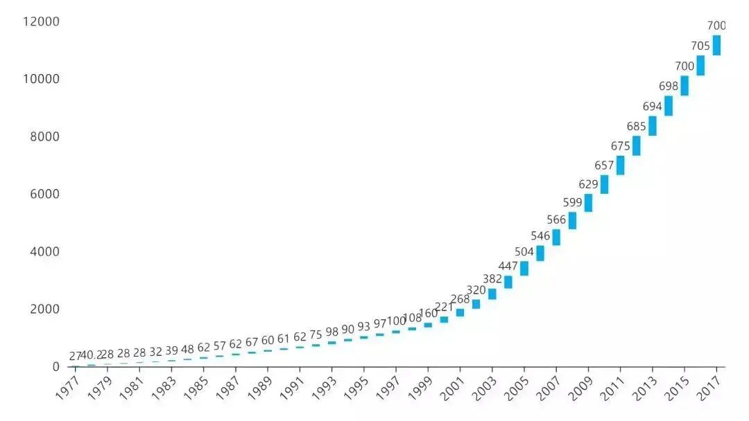 我们一直都知道大学扩招速度迅猛,但或许你是第一次亲眼看到这条曲线的陡峭。