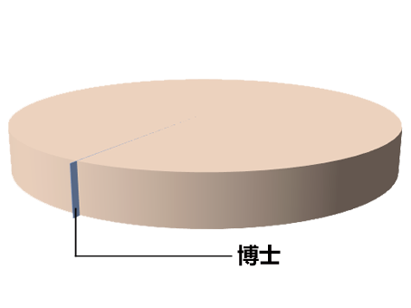中国大陆总人口突破14亿,全国博士仅约有80万(1978年至2017年之和),这个比例仅仅只有万分之五点七即5.7‱。