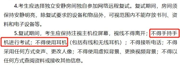 此外,复试期间,考生不得手持手机进行考试;不得使用耳机……