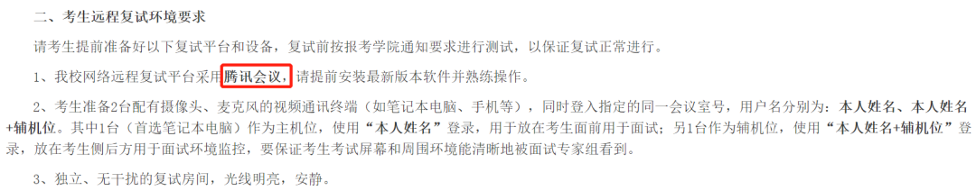 网络远程复试采用主机位和辅机位“双机位”视频模式。