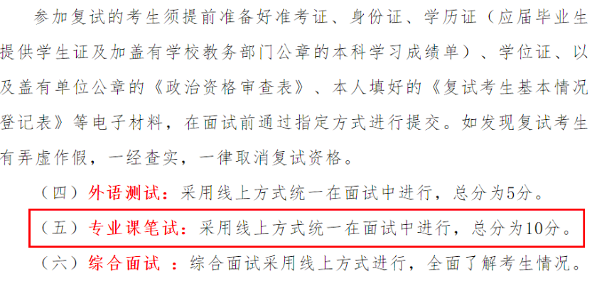 发布复试公告,明确线上复试,且所有专业都会有专业课笔试考查。