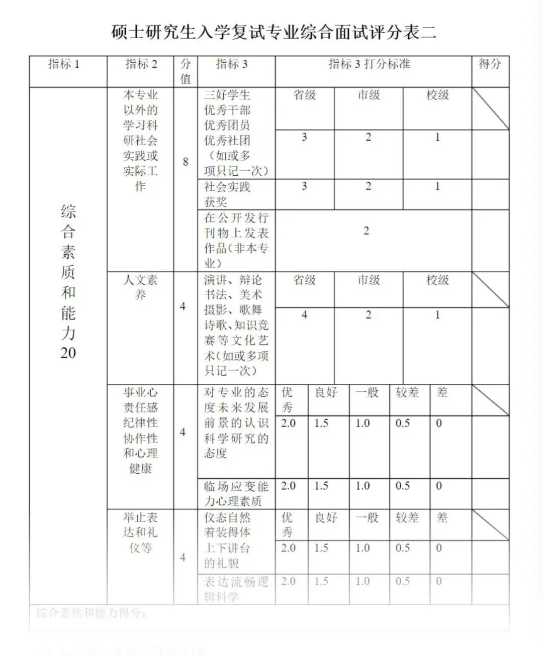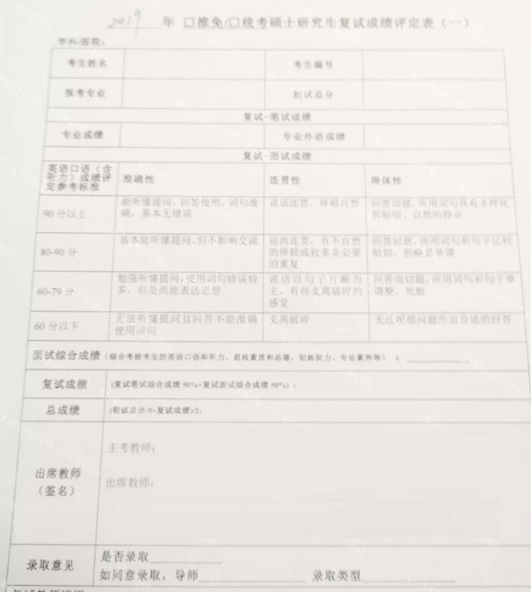 复试评分标准以及复试成绩评定表,大家可以参考一下,做到心中有数才能有条不紊。