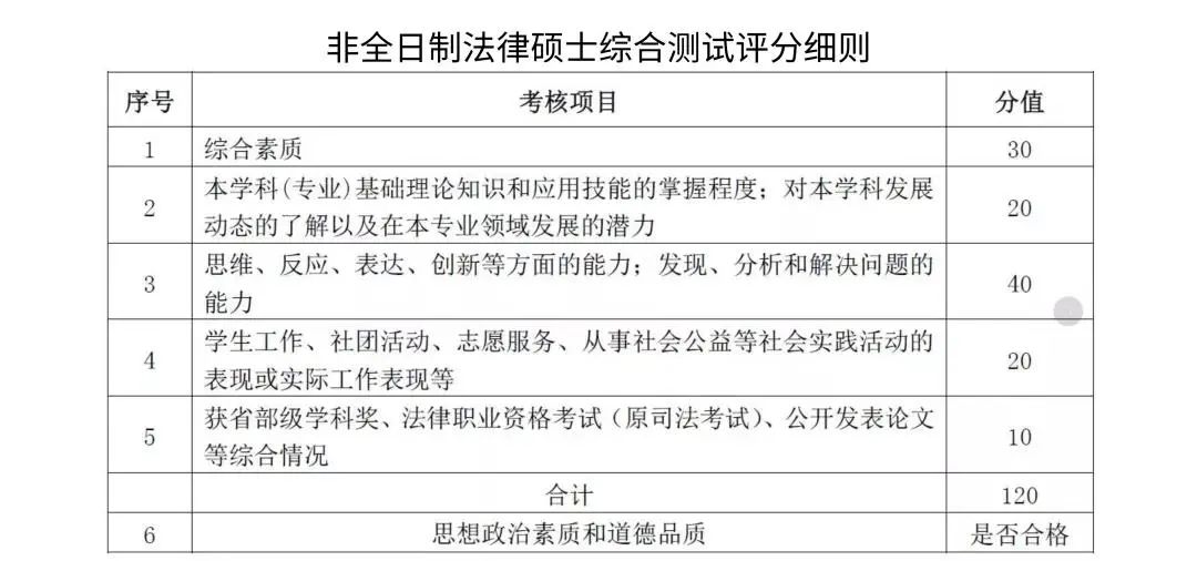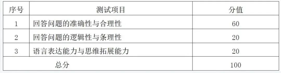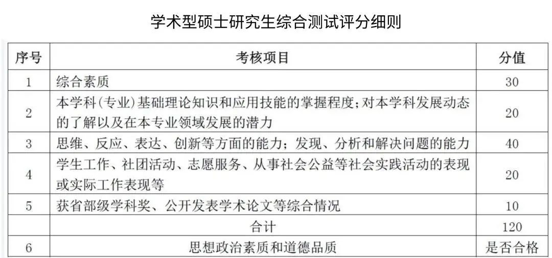 ① 思想政治素质和品德考核、专业素养测试、外语听说能力、实践(实验)能力考核、综合素质评价等内容面试考核时间为每名考生不少于20分钟。