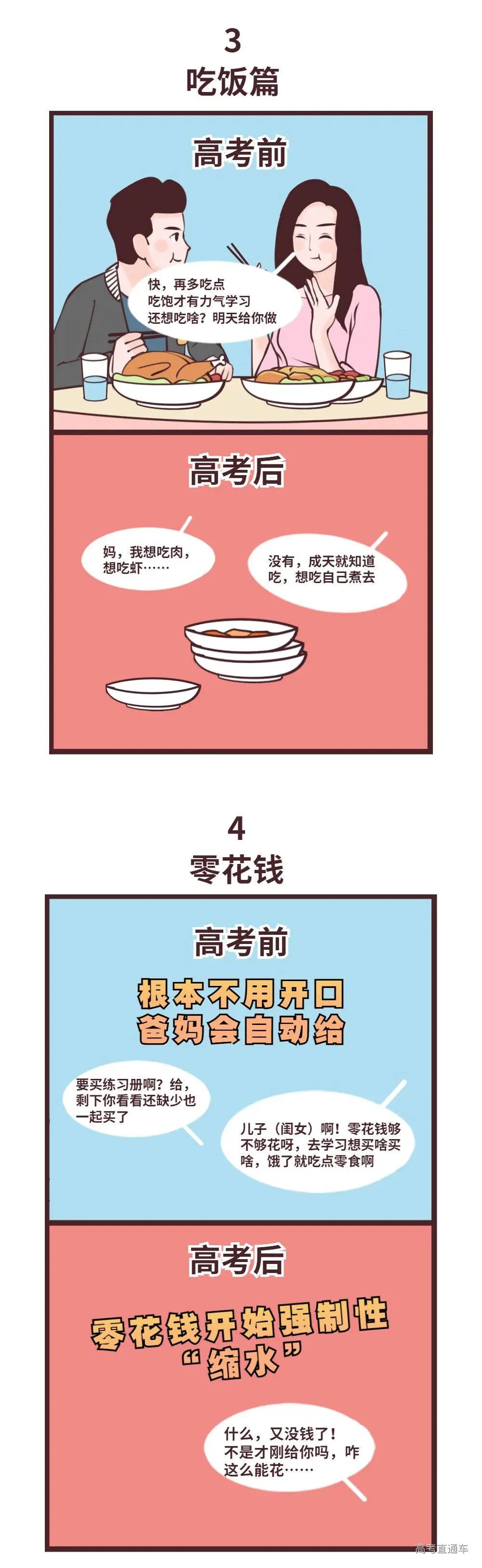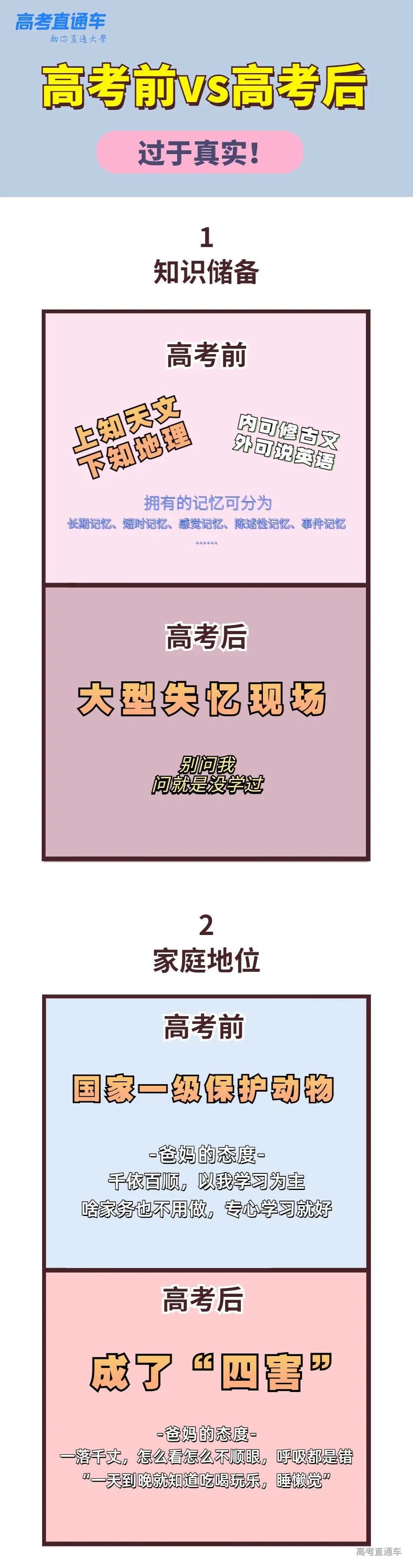那么,高考前VS高考后大家除了以上所说的变化外,还有哪些方面会发生改变呢?来看看下面这几组对比↓