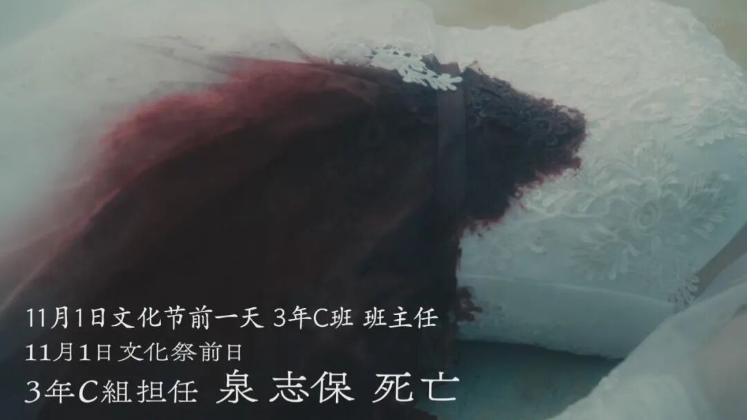 3年C班的班主任泉(北乃绮)被发现死在了废弃的游泳池中,她身穿着婚纱,死亡已经10天了,凶手还未找到,连杀人凶器都没有被留下。