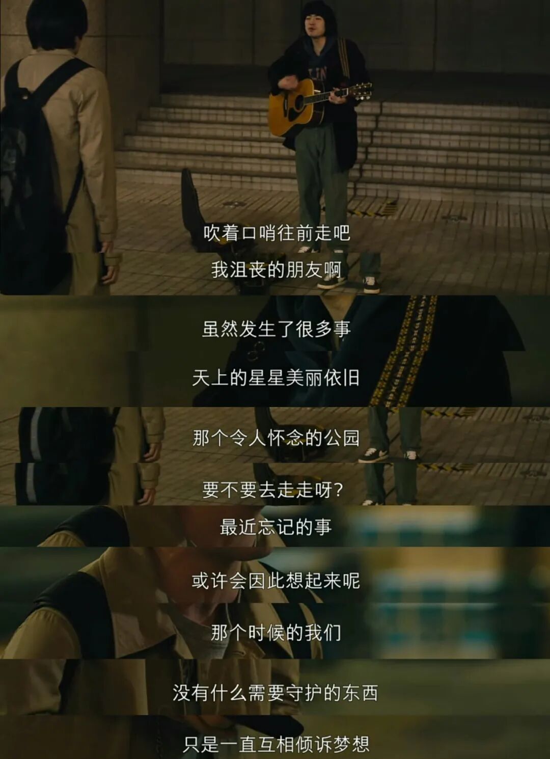 大概只有经历过的人才会懂,那些深夜里大段大段的,男主独自穿梭街头的镜头,为什么会那么摇晃不安;为什么他会呆立着看街头艺人弹唱「请让你的那双眼睛,被我凝视吧」,虽然是安排好的「托」却还是听得双眼含泪。