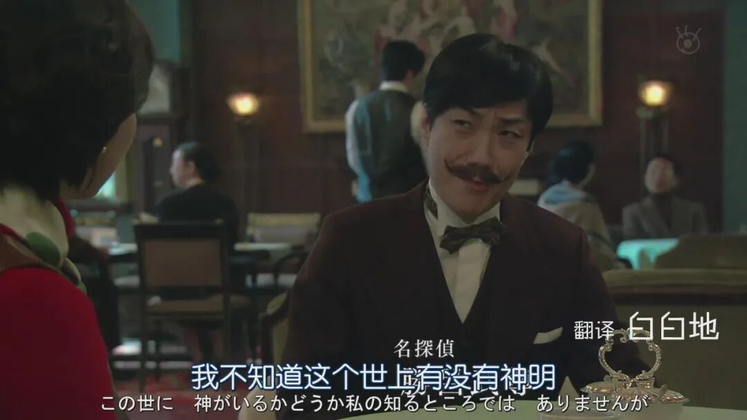 这次也一样把故事背景搬到了近代的日本,讲述了发生在昭和30年代的熊野古镇,名侦探胜吕武尊(野村万斋 饰演)破案的故事。