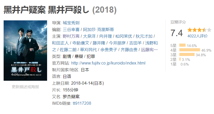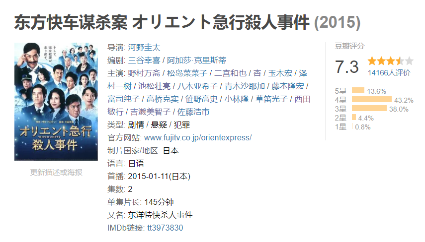 《死亡约会》是SP剧,只有1集,部屋君还给大家准备了该系列的前两弹《东方快车谋杀案》和《黑井户疑案》。