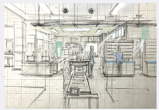 内景是从零开始搭建的,制作团队多次到真实的医院勘察,拍摄用的场景中,贴在药剂上的标签、依据每个病症制作的处方签等,都是精心考究的,以及药品放置处,也考虑到拍摄的角度等等。