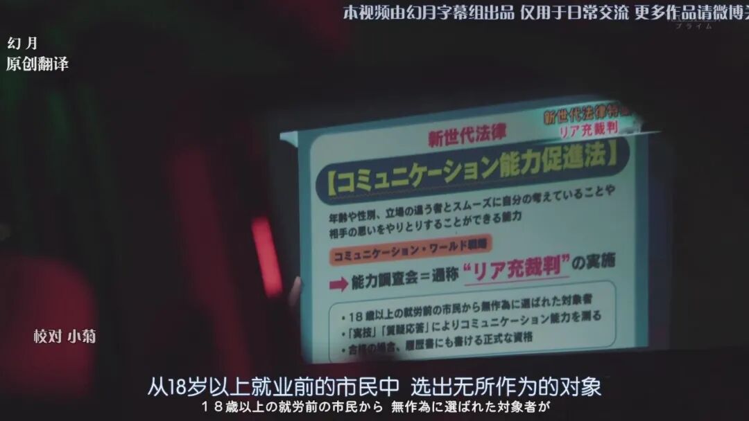 这个故事设定是为了提高日本人的社交能力,颁布了一个“社交能力促进法”,设置了一个“现充裁决”机构,对18岁以上看起来没有什么社交能力的人进行社交能力的评判,不合格的话要被下派做某个任务。