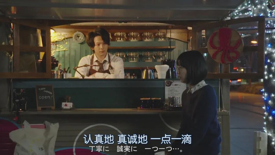 中村伦也饰演主角青山一,他开着一家名为“章鱼咖啡”的移动咖啡店。(《这份爱可以加热吗》中的社长再就业?)
