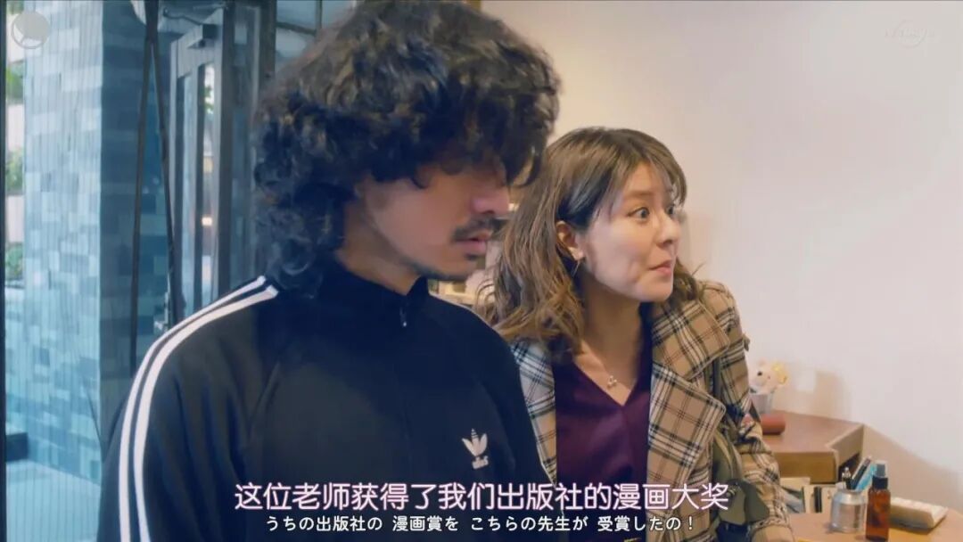 这个男人是漫画家(安藤政信 饰演),马上要举办颁奖仪式了,他还是一头乱糟糟的卷发,闺蜜拜托女主帮忙做个上的了台面的造型,就走了。