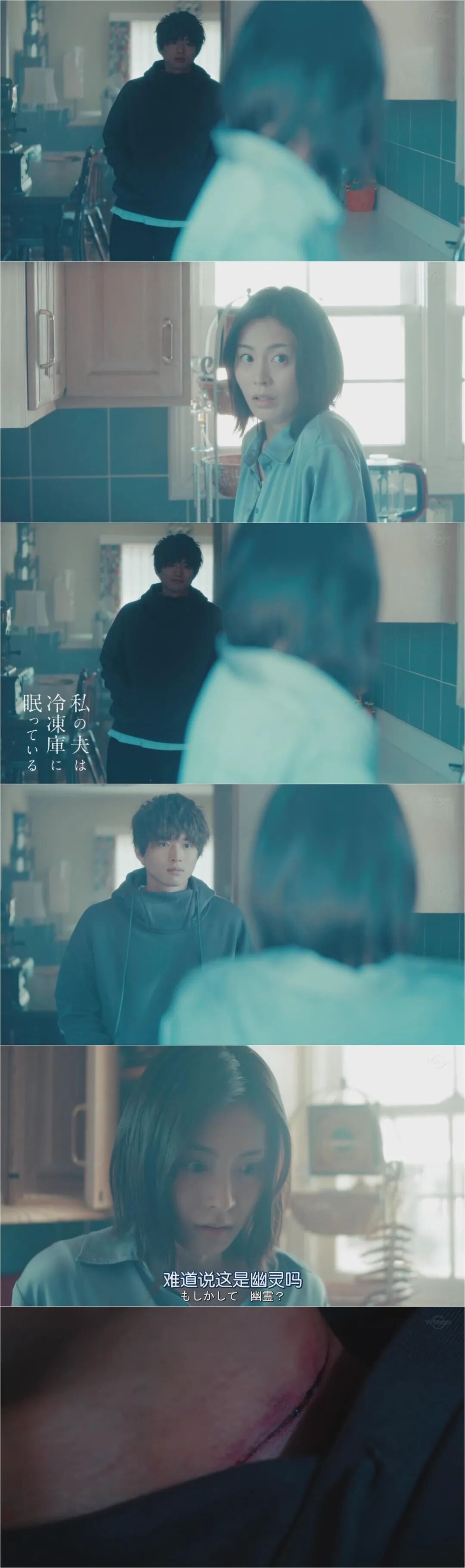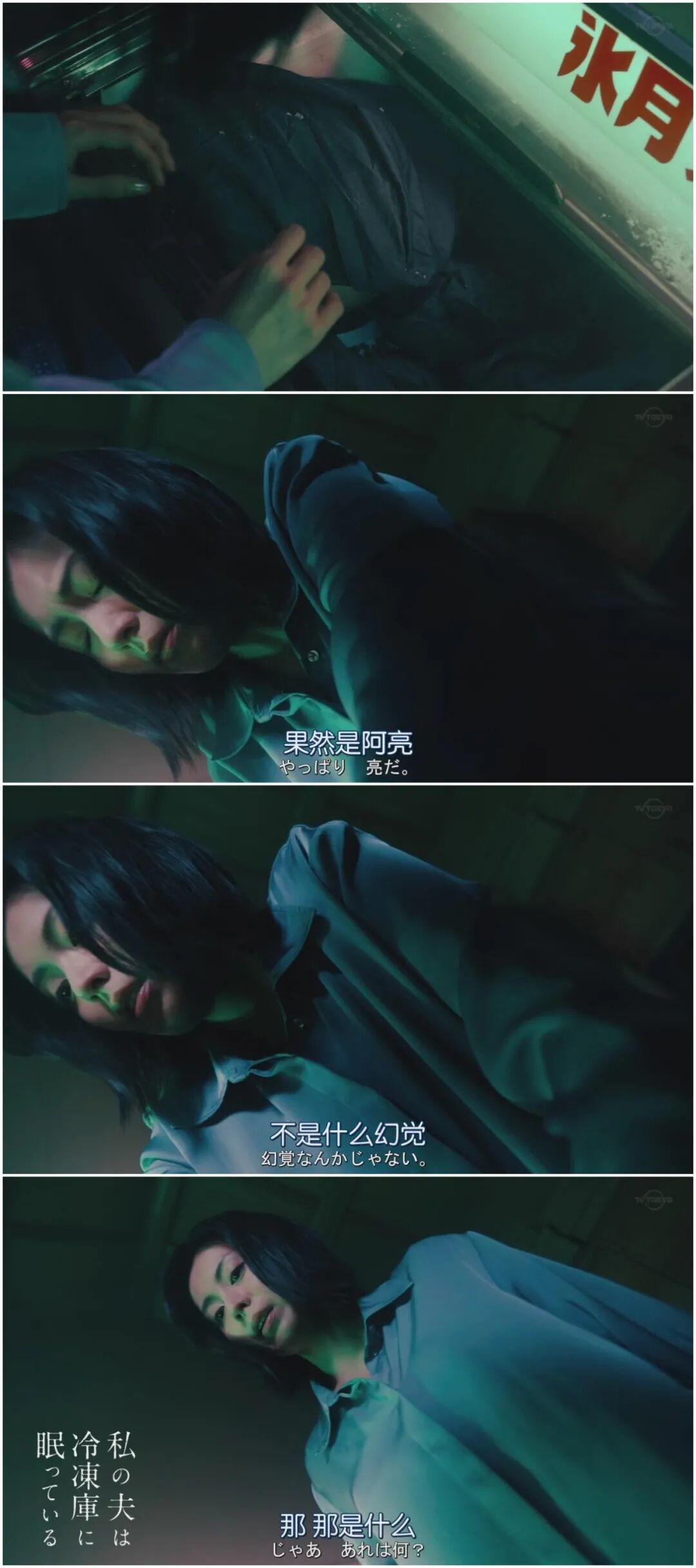 夏奈被吓个半死,而且她好像看到了阿亮的脖子上有勒痕,她跑去了冷冻柜确认,确实是自己把丈夫杀死了,尸体还在冷冻柜里躺着。