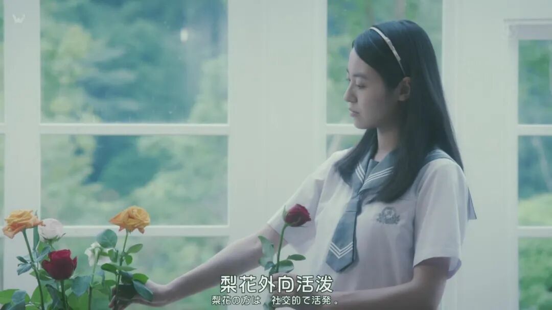 高冈早纪饰演疯狂追求极致纯爱、脑子不太正常的女主角雨宫莉香,自称28岁,她诡异的气场和手腕上的十字架伤疤周围的人都觉得心里发毛。