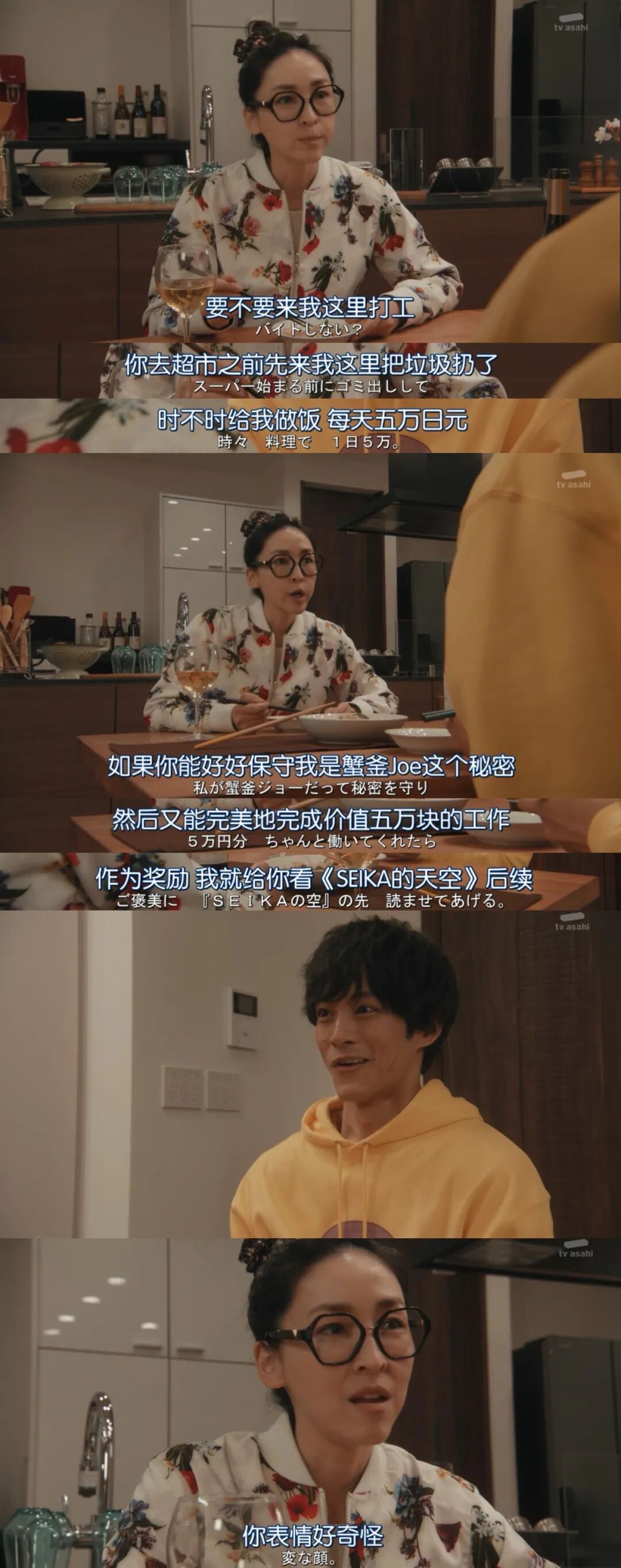 唯月还有一个身份是漫画家,巧合的是,桃地最爱的漫画的作者正是笔名为“蟹釜joe”的唯月。