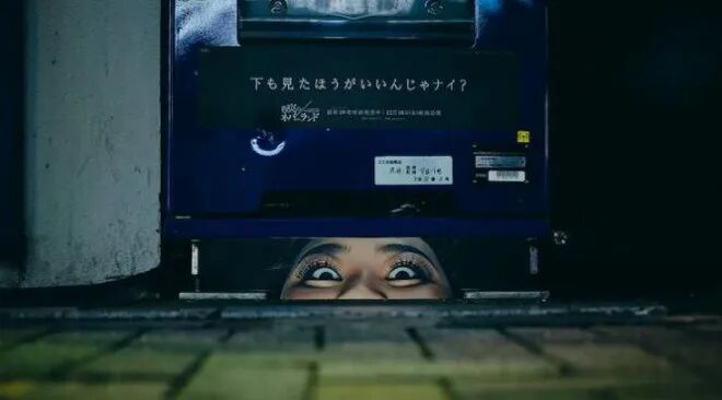 渡边直美表情怪异地从电梯间、自动贩卖机下面和墙壁的缝隙里“钻出”。。。。