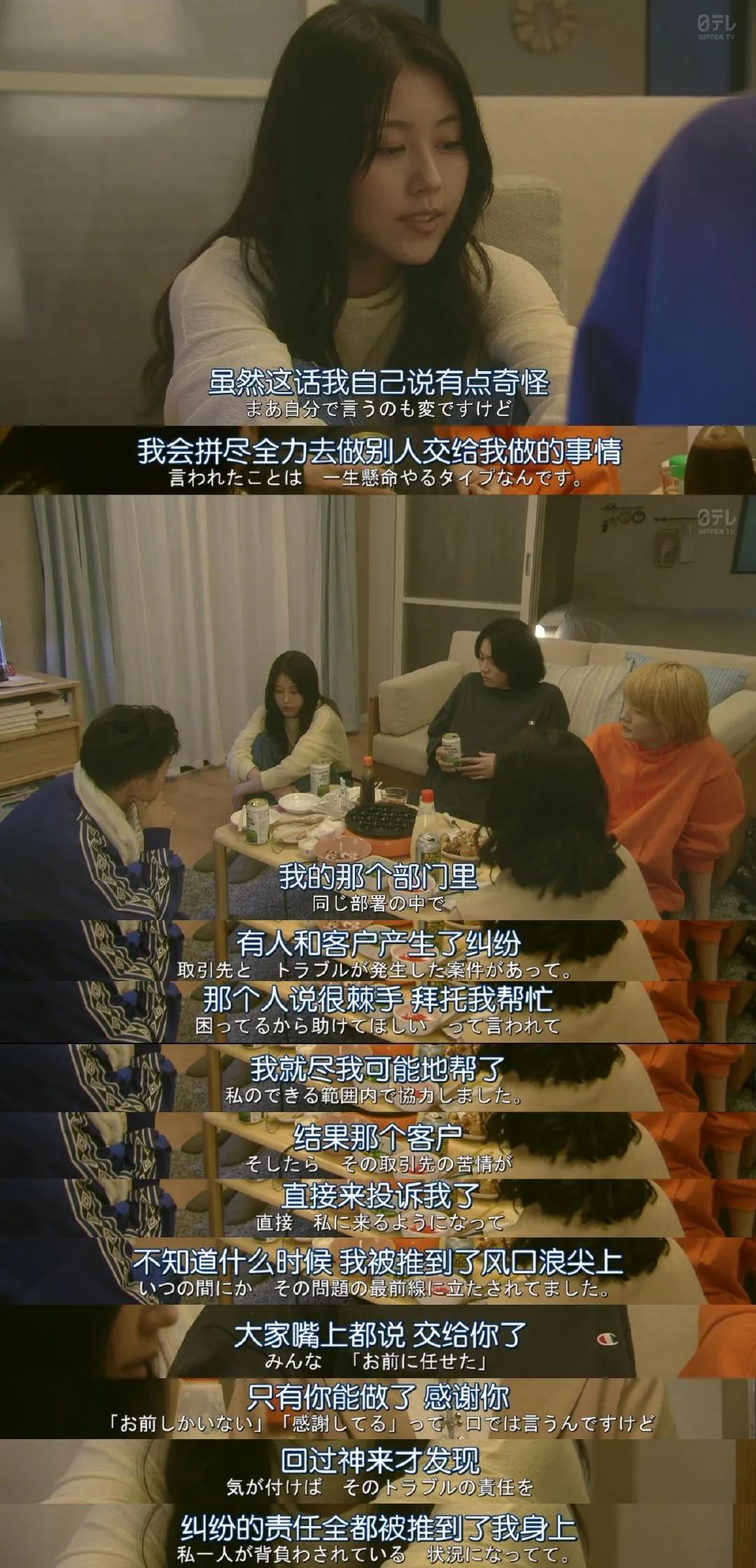 更让部屋君有感触的角色是中滨,她原本努力工作、待人热情、认真生活,却没有得到相应的回报。