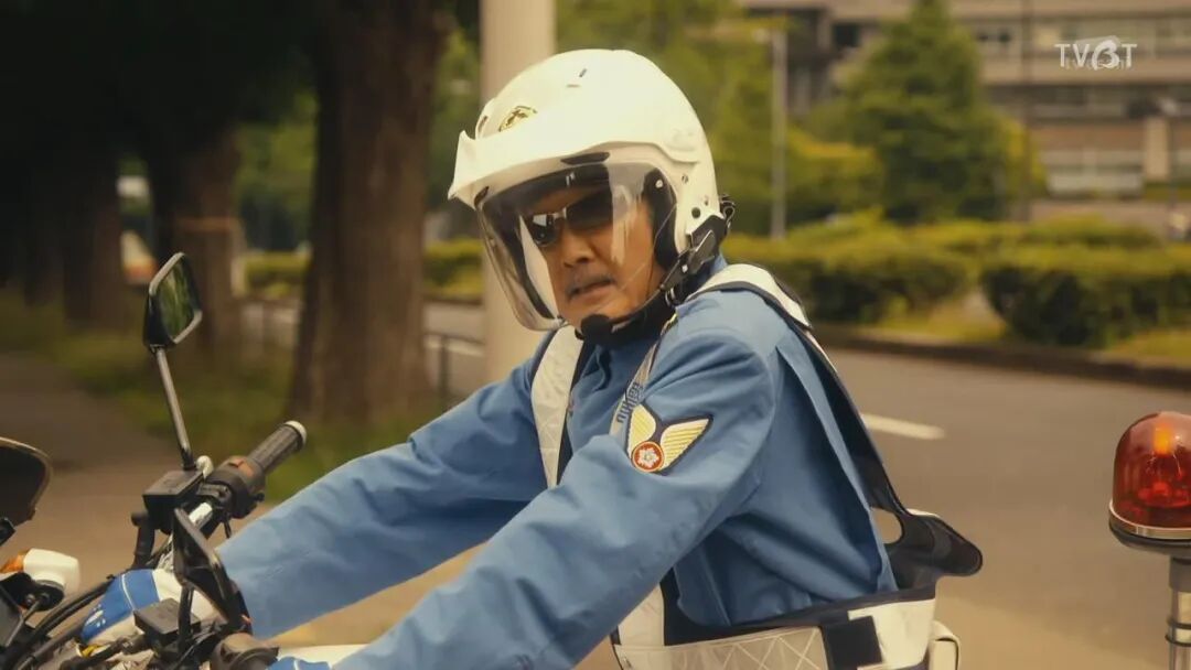 片桐正敏(吉田钢太郎 饰演)到交通机动队当巡逻摩托车队员。=