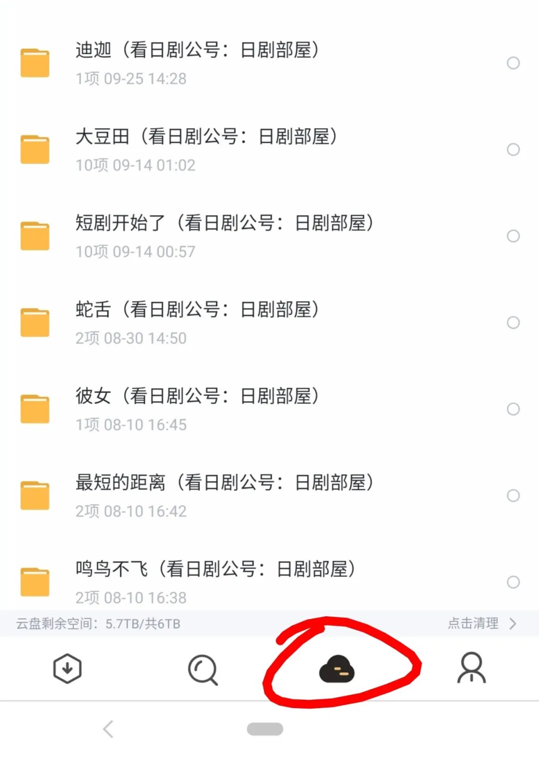 打开迅雷软件,屏幕下方一朵云的图标,就是【迅雷云盘】,然后找到所保存的文件。