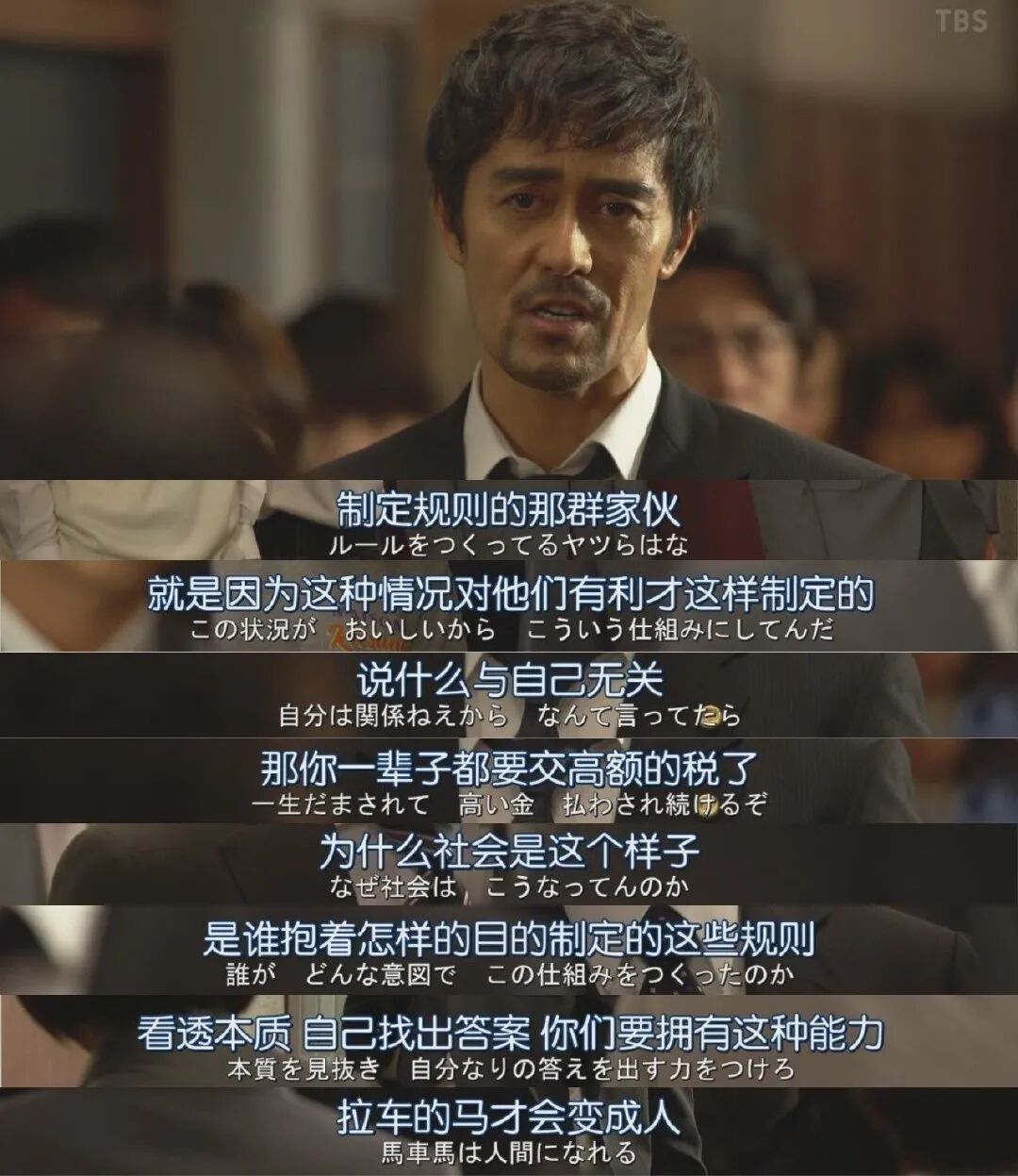 《龙樱》里的樱木老师给学生们说了考大学的重要性,是为了不被社会规则的制定者们压榨,不要成为“拉车的马”。