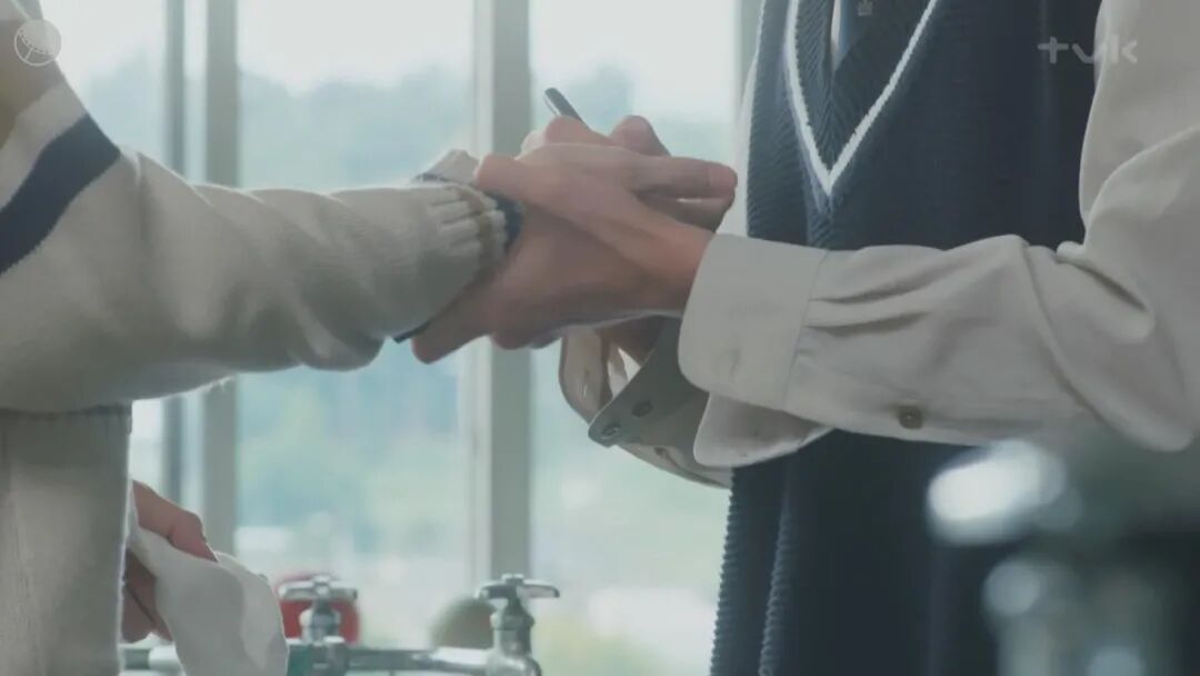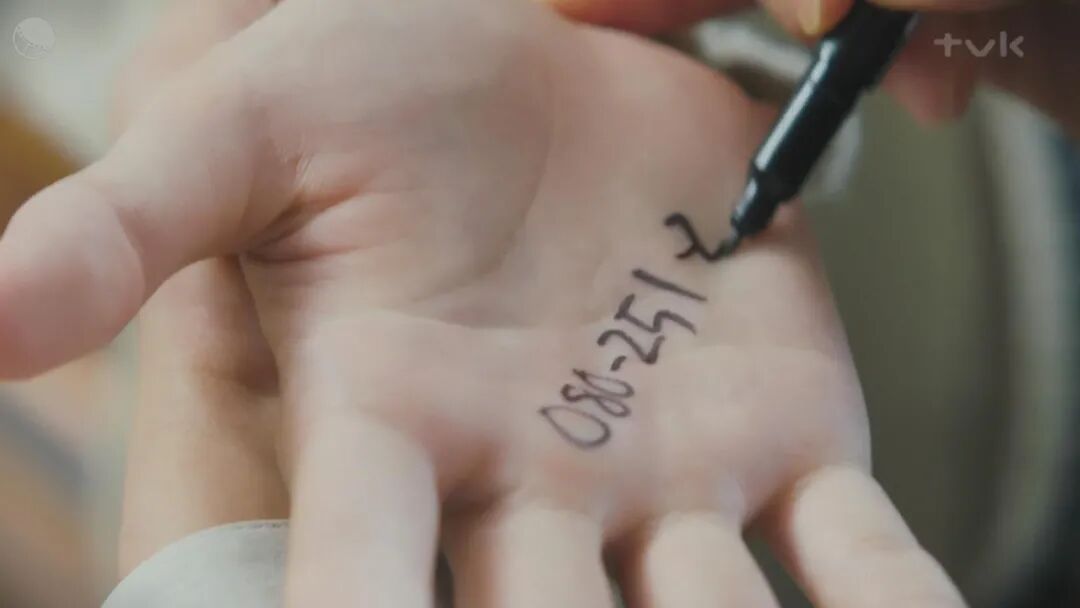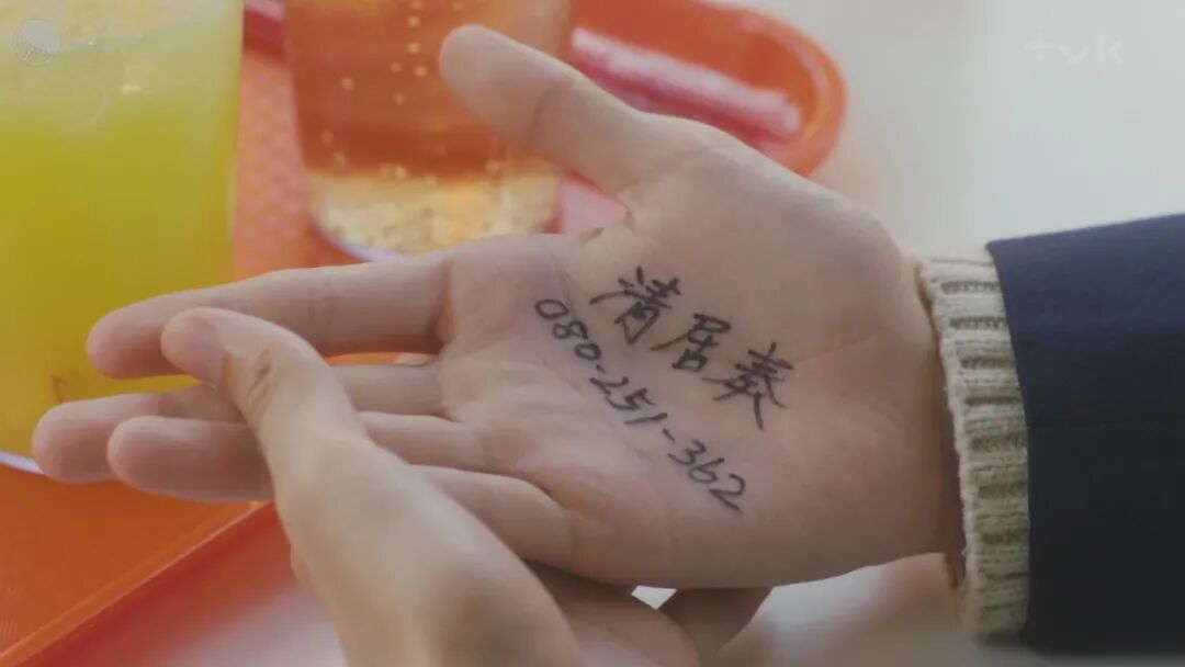 为了让平良在排上队后能联系到自己,清居在平良的手上写下了自己的手机号。