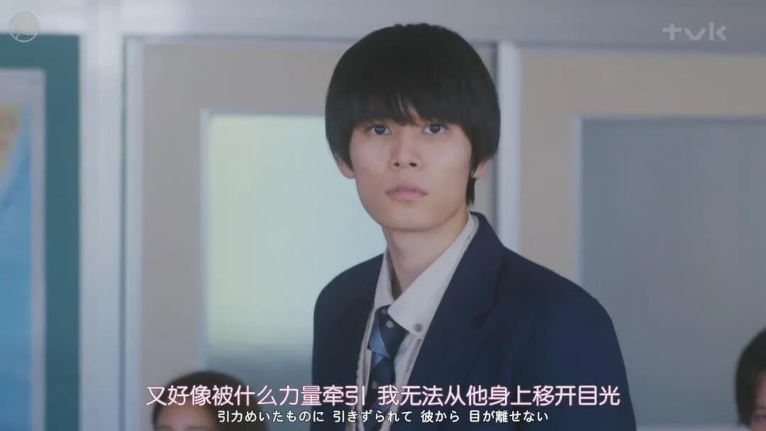 平良看着走向座位的男同学,内心OS“如同被卷入退潮,受到了什么力量的牵引,无法从他身上移开目光”。