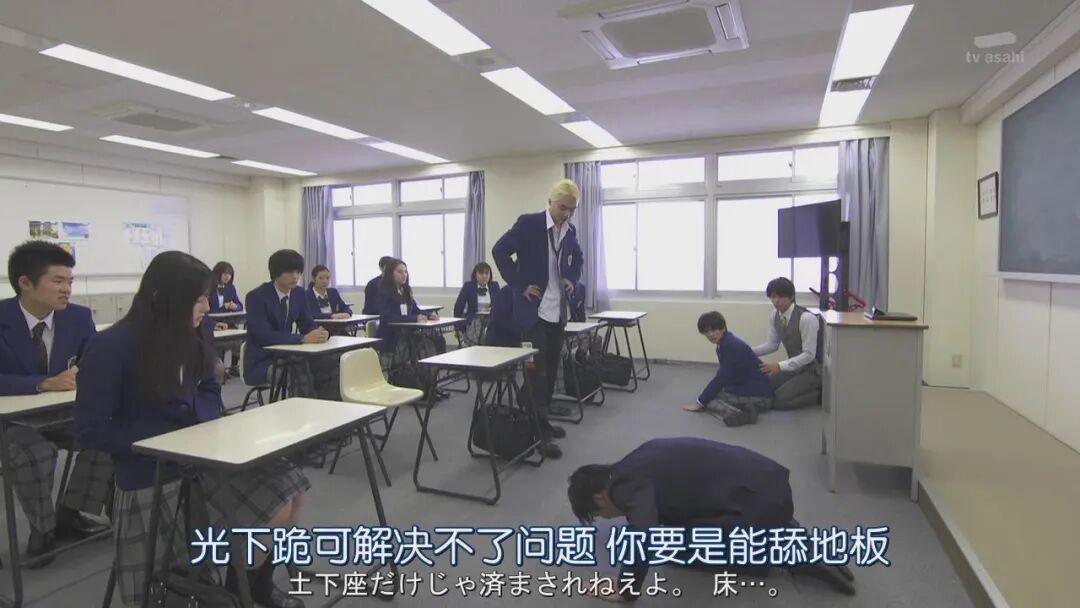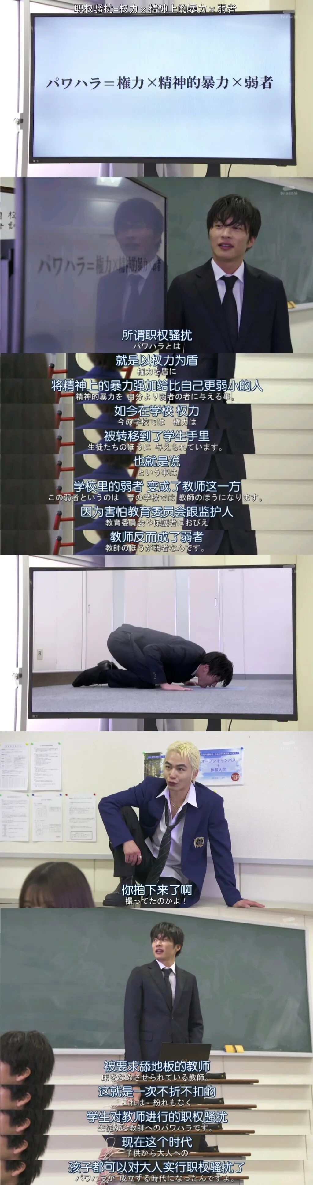 看到并不怕自己,总是笑嘻嘻的老师,带头的黄毛学生更火大了,开始各种恶搞他,让他知难而退,甚至要求他下跪、舔地板。