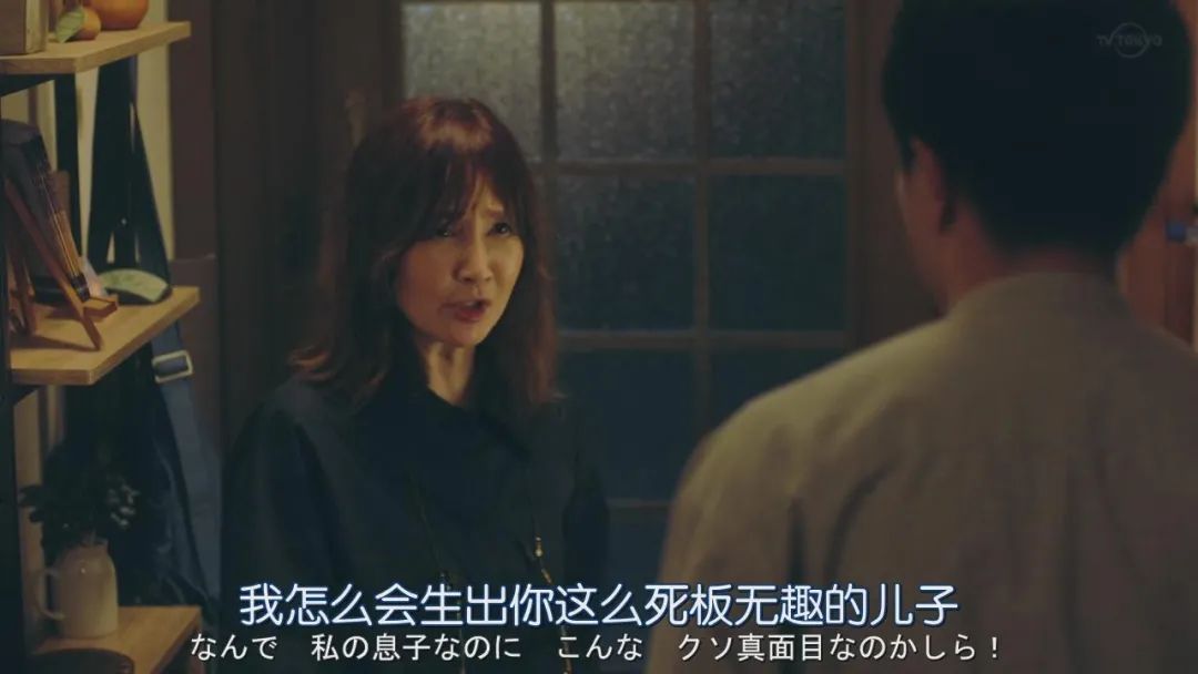 他和妻子、女儿过着非常平淡的生活,连他的母亲都吐槽,作为恋爱小说作家的自己竟然生了一个如此无趣的儿子。