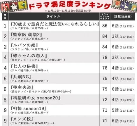 本剧连续两周登上日剧满意度排行榜第一位了