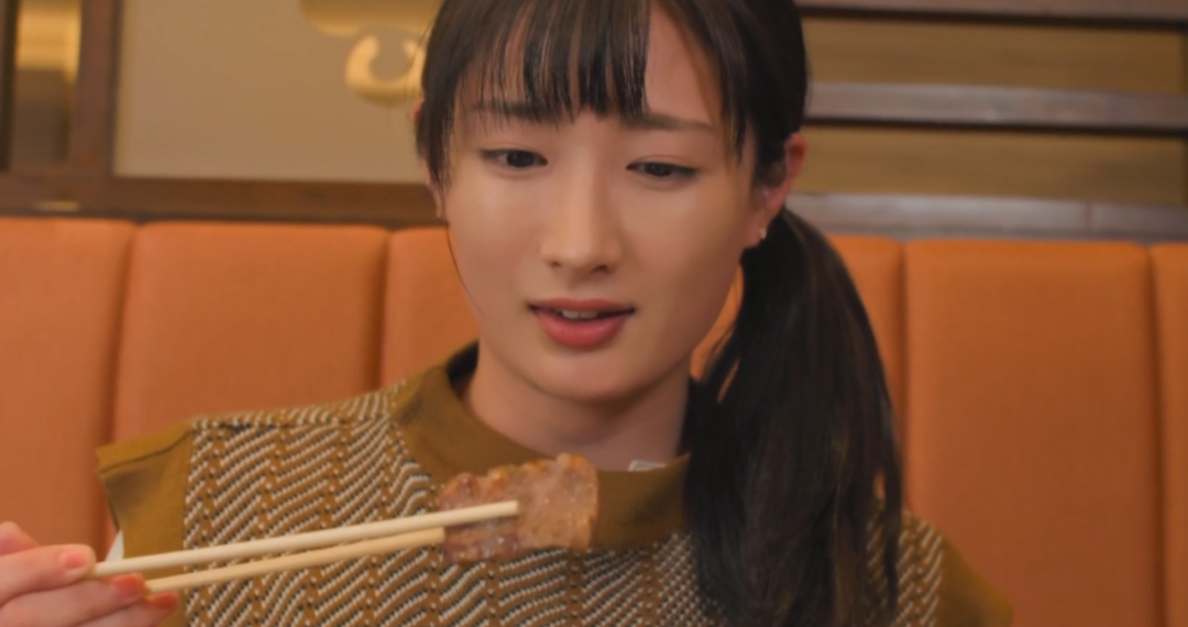 除了酒,还有下酒菜作为配角:有热量极高却让人欲罢不能的炸鸡、有清新爽口败火消毒的炒苦瓜、有足足够她一个人饱餐一顿的烤鱼,有令她吃起来酣畅淋漓的烤串,还有一整根粗粗的炸竹笋。