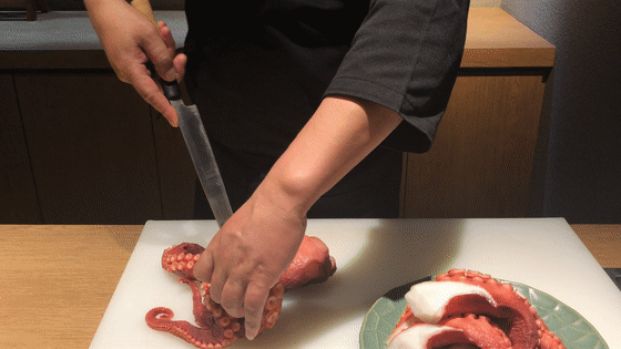 当视线穿过吧台落到料理台上时,没有人不会被师傅的手艺吸引,肥厚柔嫩的蓝鳍金枪鱼腹中肉;丰腴脂厚的法罗群岛三文鱼;鲜甜味足的超大甜虾;滑嫩鲜美的生海胆......刺身的美味在师傅的起手与落手之间变得格外诱人。