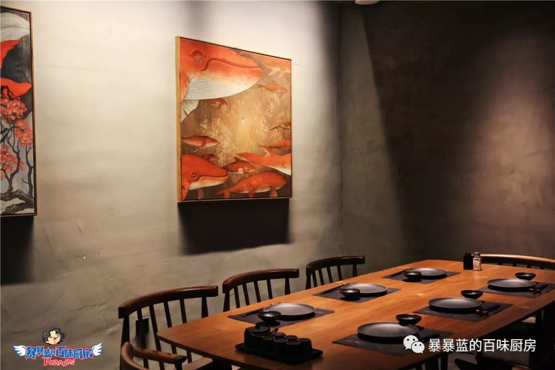 作为青梅酒肆的姐妹店,青岚做的是日料,但整体的装修环境略带新中式的古风韵味,可以说是一步一景。