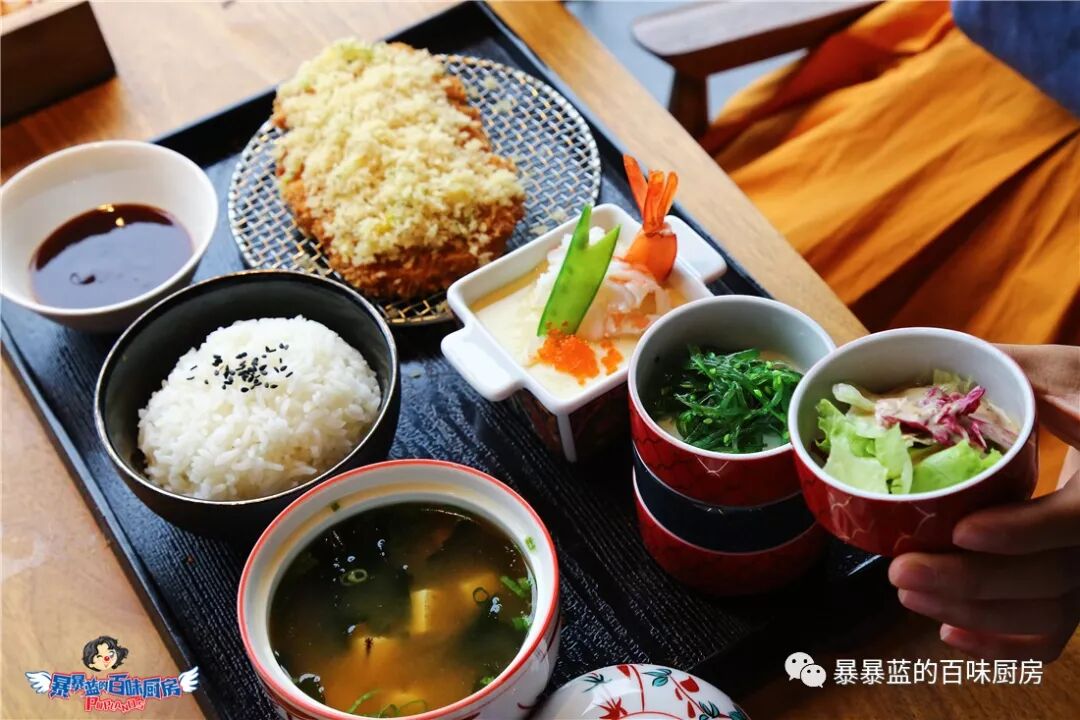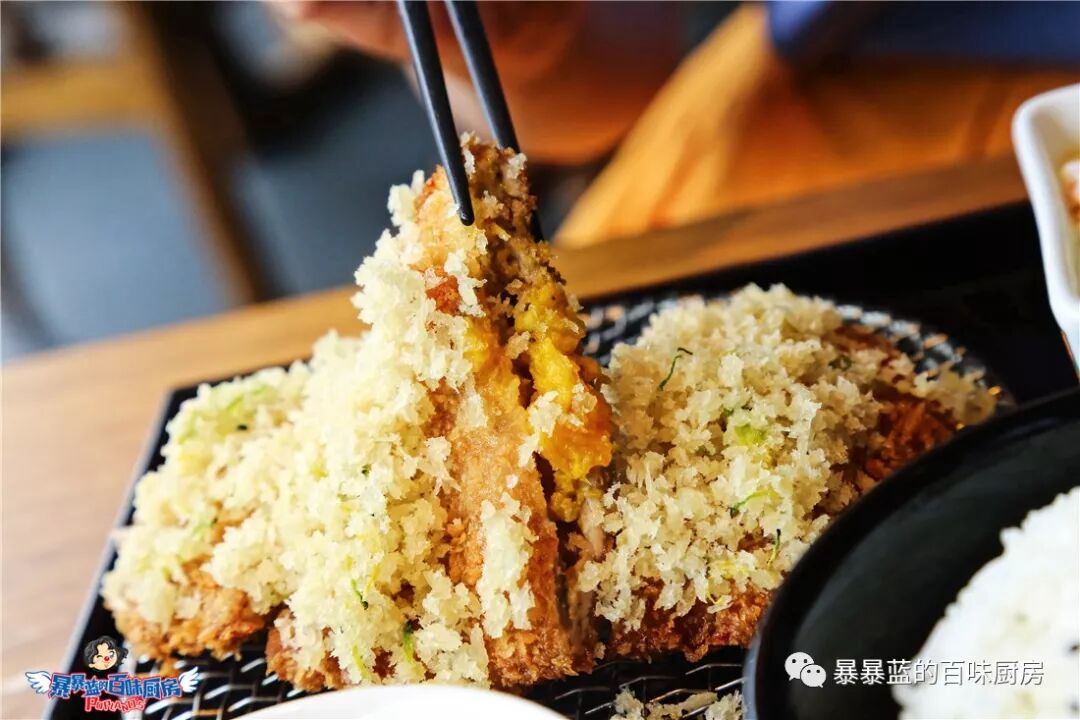 有主食、有小菜、还有味增汤,最玄妙的是猪排,咬上一口你就会惊喜发现里面竟然还藏着南瓜混合芝士的内馅,让原本略像油腻的炸猪排瞬间变得清爽解腻了许多。