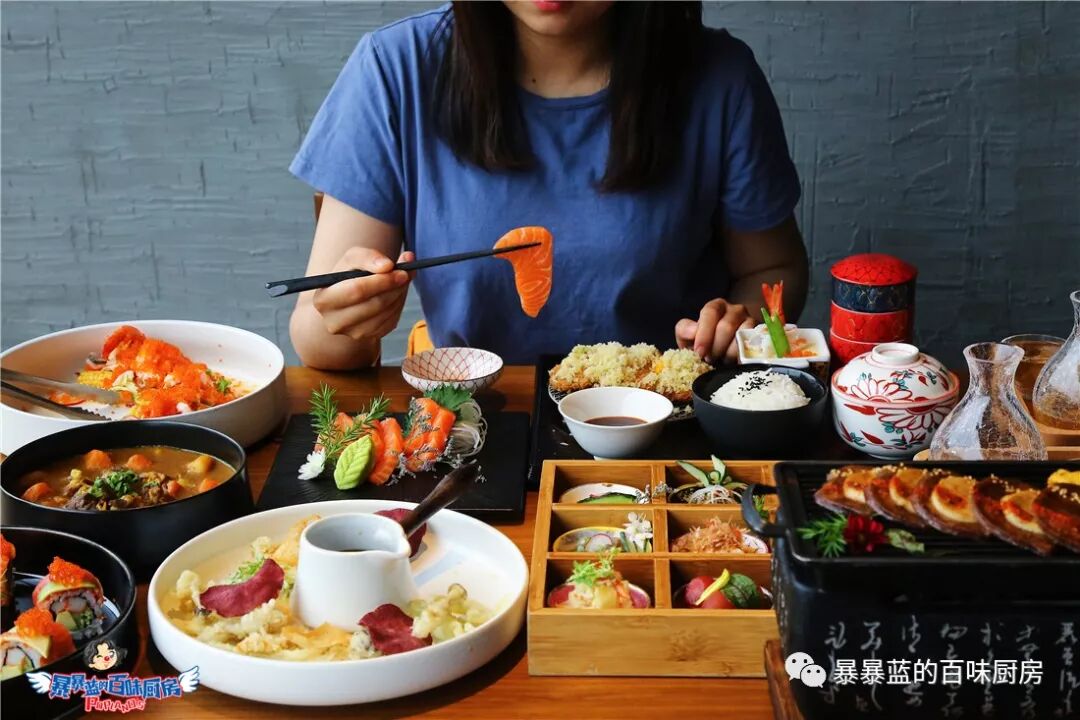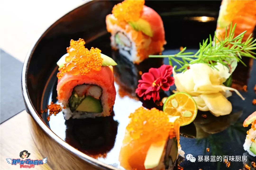 里面卷着蟹柳牛油果,顶上铺着三文鱼和金枪鱼,一整个放嘴里,先是蟹籽在口中炸开,鱼生的鲜甜又层层递进,答应我,一定要点!