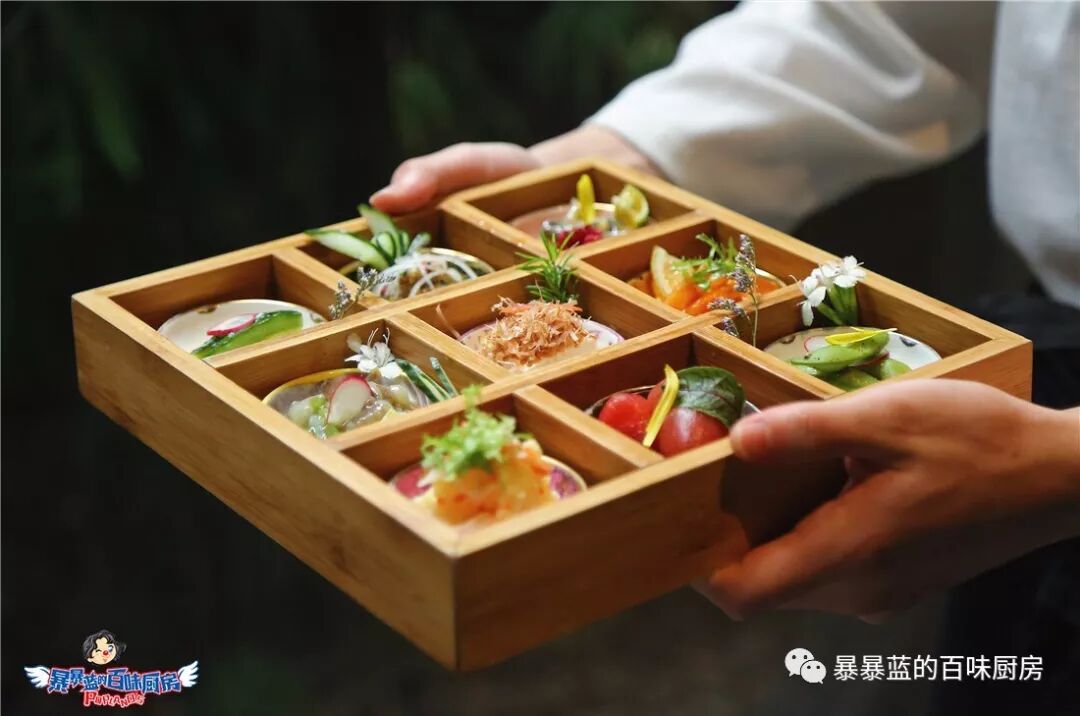在青岚先付并不是单一的小菜,这里用九宫格拼盘的形式呈现,不仅颜值颇高,选择也多多,九种味道每一个都吃不够。