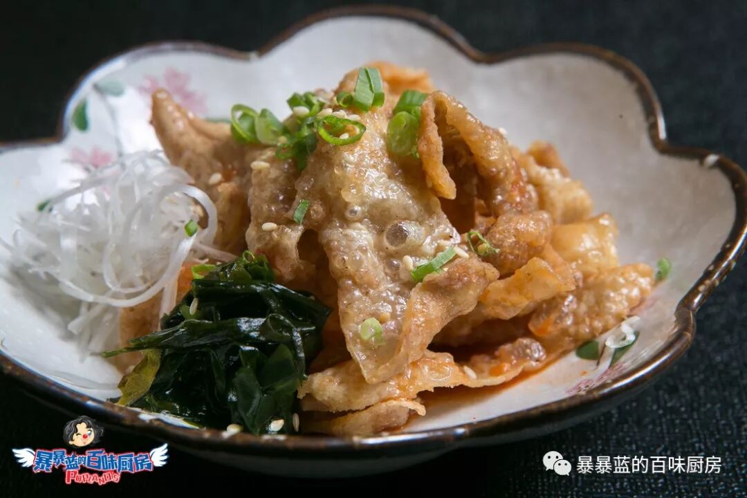 单独的小食也可圈可点,炸大虾有点像日式炸串的做法,脱离了炸品都是天妇罗的逻辑;橙醋鸡皮常见于居酒屋,造型简单可爱,非常有深夜食堂的感觉。