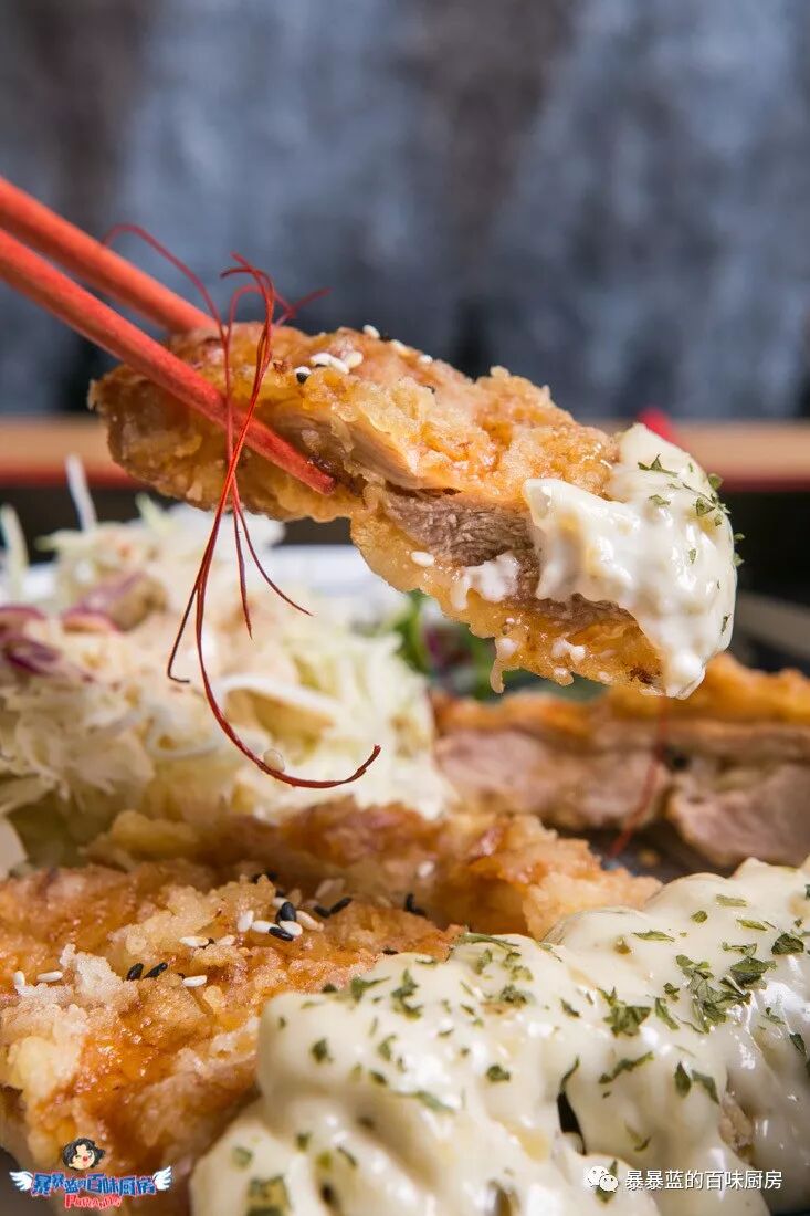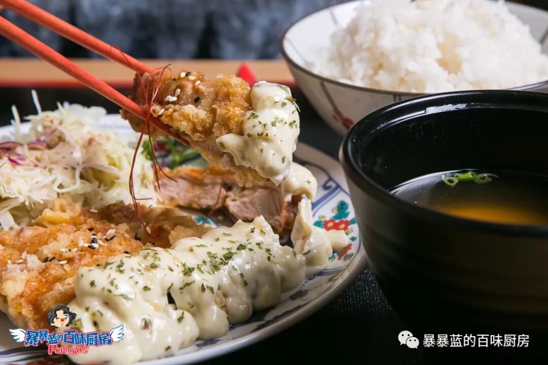 南蛮鸡肉属于日本南部料理,鸡肉就是炸过的鸡腿肉,核心是淋上去的南蛮醋汁,一头是淡淡的酸,一头是鞑靼酱的甜,酸酸甜甜,也是很像爱情了。