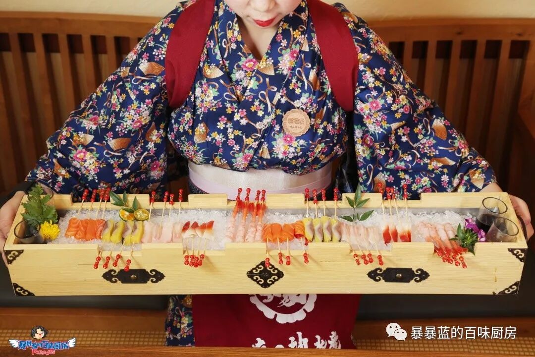 一米长的木盘载着可爱的刺身,它们换化为串串的“壮举”让他家拥有了第二道专利菜品!