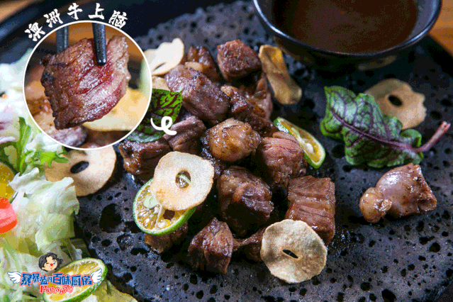 澳洲牛上脑,先腌再煎,上桌时定格在五到六分熟,入口嫩且多汁,没有咀嚼不烂的艰涩,肉瘾过得格外容易。
