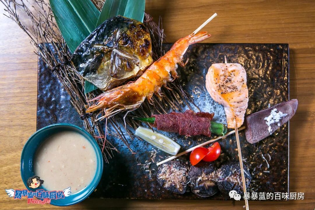 牛舌嫩、三文鱼厚实、大虾吃着比看着过瘾,培根里还卷着秋葵……有荤有素、有煎有烤,可以简单地撒盐调味,也有特制的酱料专门提鲜去腥。