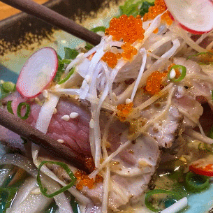肥厚的鸡腿肉配甜甜的大葱,新鲜海虾做成盐烤口味……一人手把一串,倒上一大杯朝日,日料店怎么就不能撒野了!