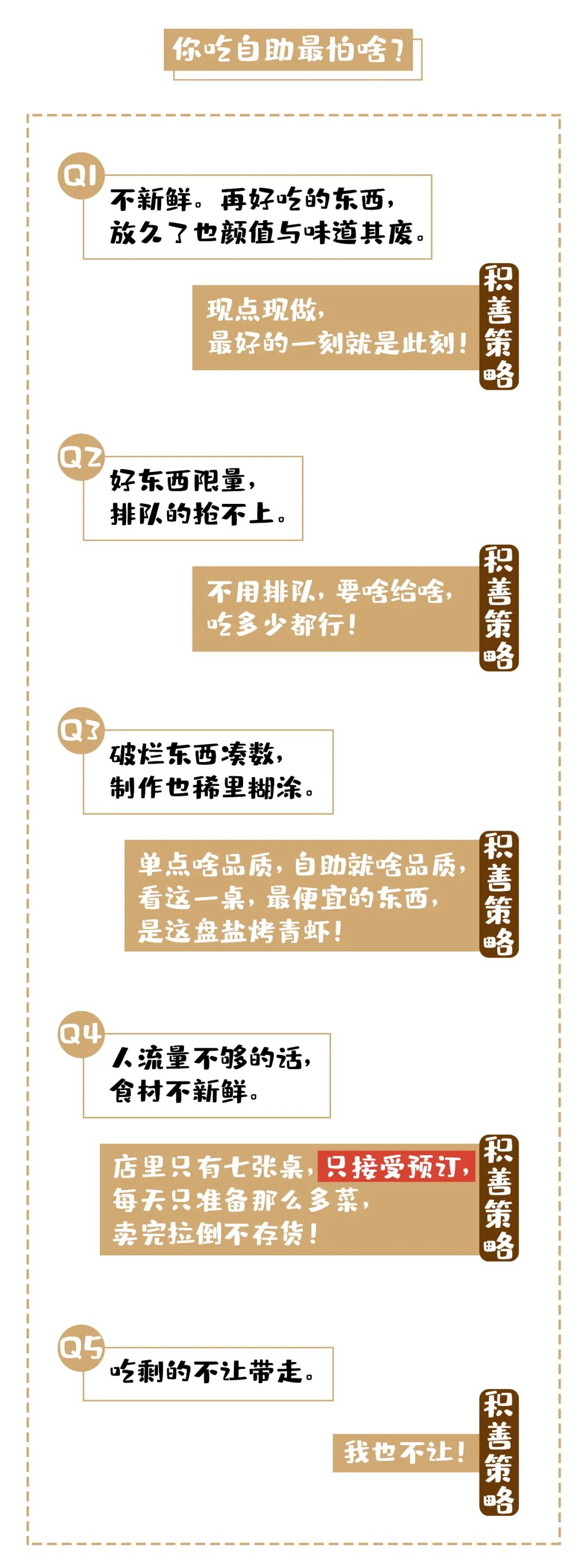 很多人吃自助是奔着回本去的,对照着价目表,哪个贵点哪个。除非最贵的东西,都刚好命中你的胃口,否则这么吃,肯定不会快乐呀!