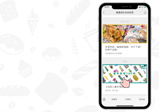 向暴暴蓝的百味厨房微信对话框