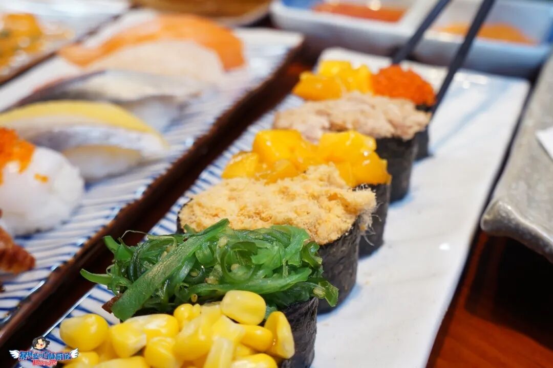 满满的蟹籽、芒果、小章鱼,这样的军舰好想要。选择太多就来个拼盘,一两块钱一个,组合成性价比最高的餐桌抢手货。