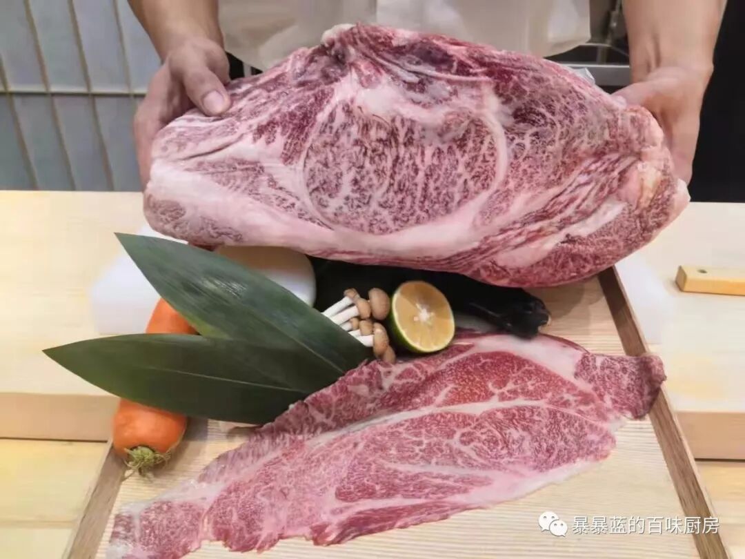 形状规整,纹理漂亮,调过味的和牛煎至鲜嫩,一口就能在肉香之中吃出细腻、微甜的滋味。