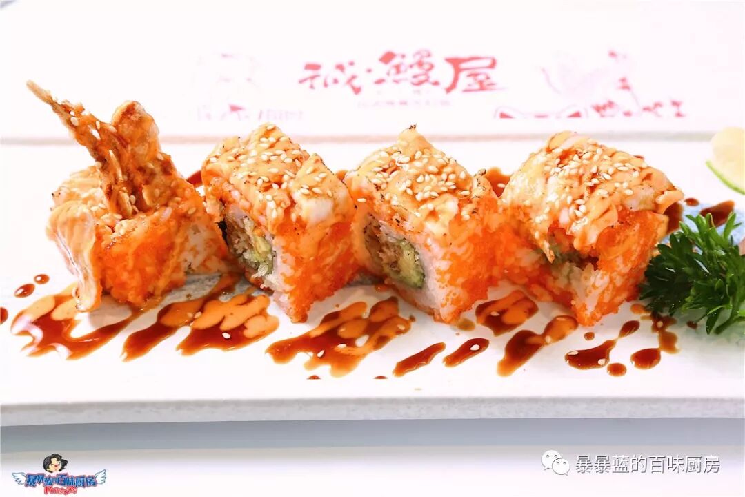 哈利波特卷得名于它魔幻的用料,小小一颗寿司,里边有白金枪和三文鱼,外边裹着鱼籽,再夹一块现炸软壳蟹,傲娇的小蟹爪仿佛带着魔杖,向你发来“荧光闪烁”!
