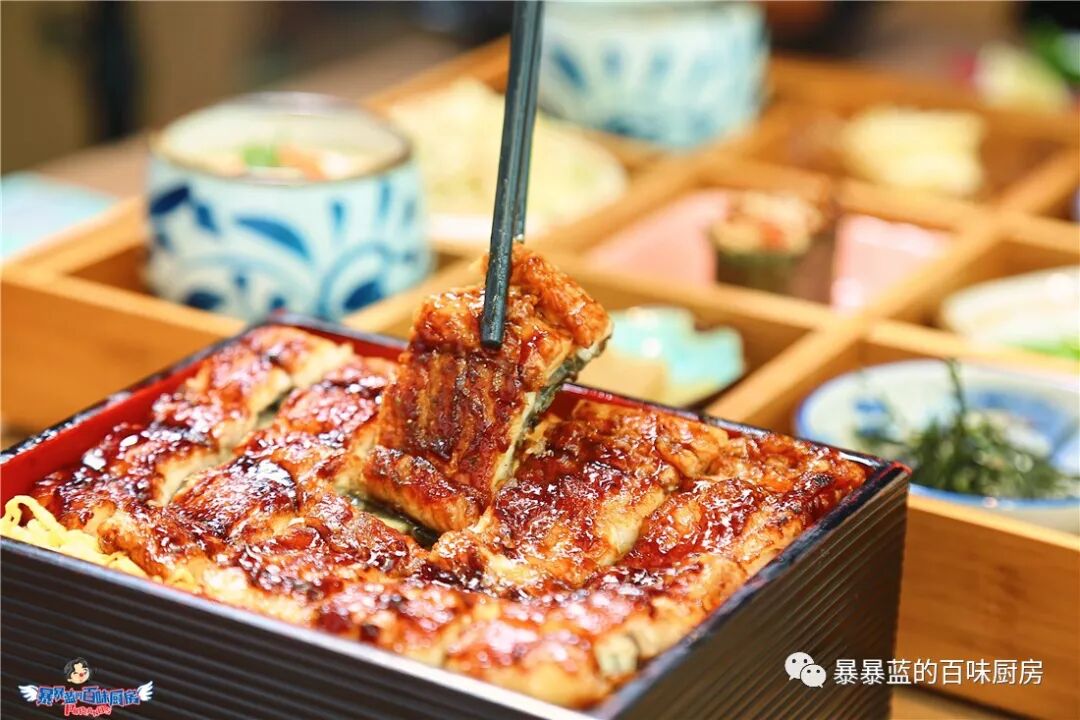 鳗鱼采用江户做法,选用鲜活大鳗,肉肥体宽,先蒸后烤,蒸过所以肉嫩,烤过所以不腻,搭配鲜甜的鳗鱼汁,口口软糯,牙齿咬下去的瞬间,汁水飞崩给你看!