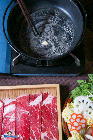 最耀眼的是这盘肉,不是个寿喜锅吗?怎么还整出烤肉的配置了?