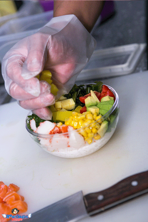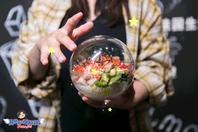 水晶球其实是波奇饭,所谓“波奇”,是日裔美籍人结合夏威夷当地特色制作出来的西式鱼生饭,把鱼生切成小块,佐以各种蔬菜坚果,跟米饭拌开,跟寿司类似的食材,却有完全不同的表达。